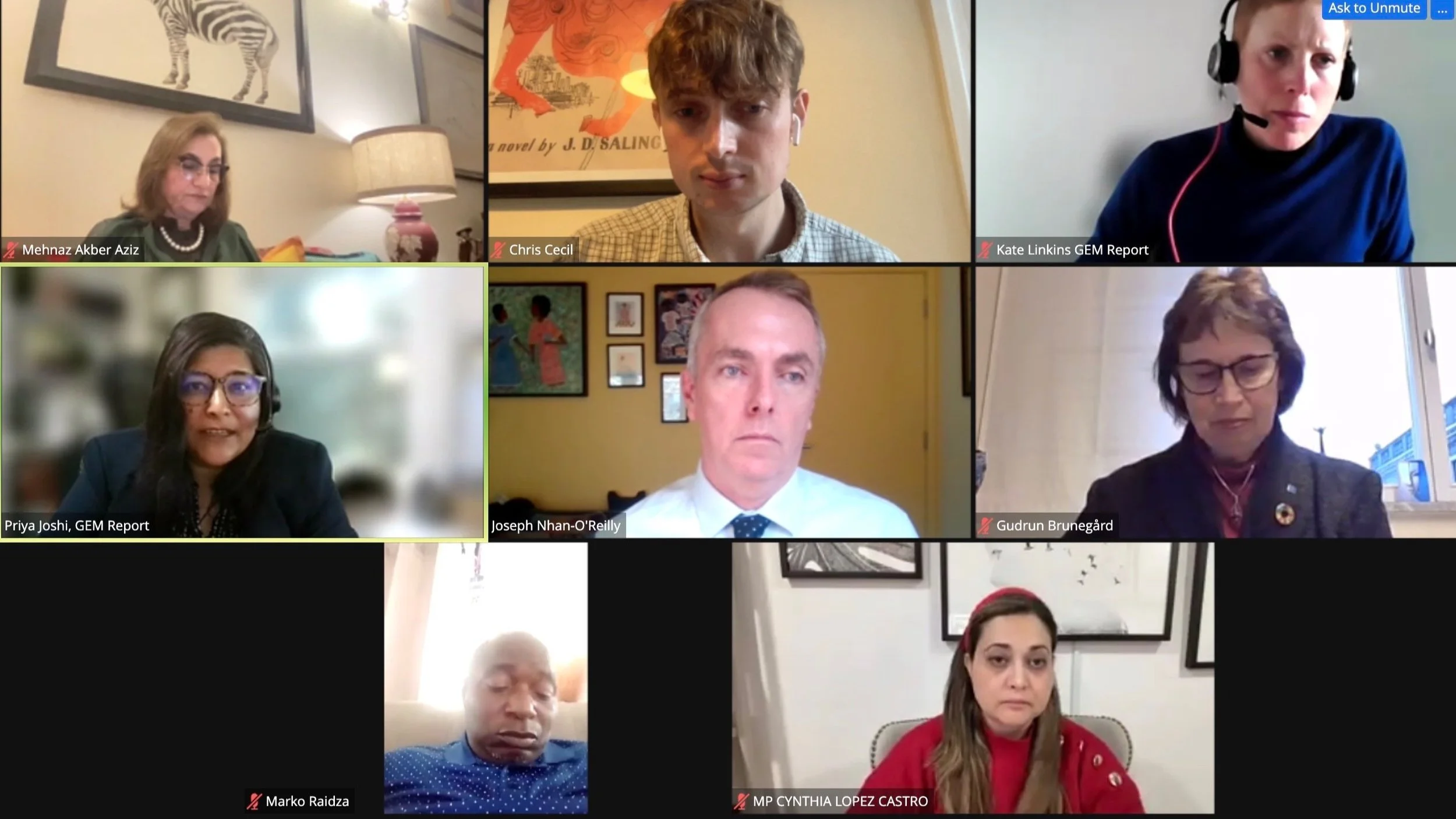 IPNEd Co-Chair and former member of the National Assembly of Pakistan, Mehnaz Akber Aziz explained how vital it is to work cross-party on education. Immediate past IPU President, Cynthia López Castro of Mexico set out the benefits of global parliamentary networks in supporting MPs to engage with and learn from parliamentarians outside their country.